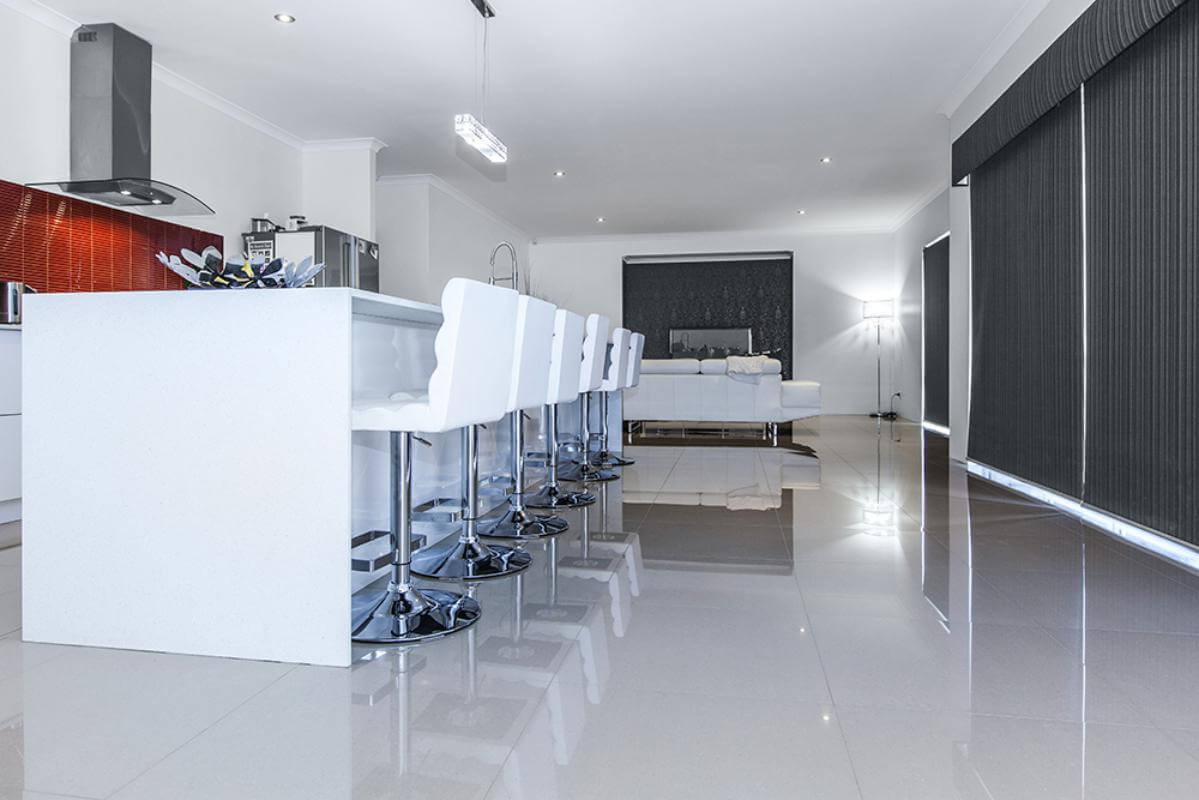 - Polished porcelains – undeniably popular for a modern and light-reflective look.
